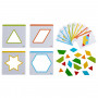 - Contenu : 18 éléments en bois, 4 cadres-formes, 10 cartes-modèles imprimées des deux côtés.