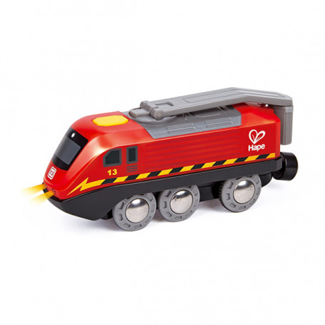 Tournez la manivelle située sur le haut de cette petite motrice intelligente pour générer et stocker assez d'énergie pour qu'elle roule le long des voies. Sélectionnez marche avant, marche arrière ou arrêt à l'aide du bouton situé sur le dessus.