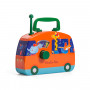 Bus radio en métal, au style estafette publicitaire, illustrée d'une fanfare d'animaux joyeux et colorés !