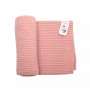 Couverture en tricot rose certifiée OEKO-TEX® qui aide les petits à réguler leur température corporelle grâce aux matières utilisées : 25% coton, 25% viscose, 25% polyamide, 22% laine mérinos et 3% cachemire.