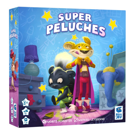 Lancez les dés pour collecter différentes parties des costumes de super héros de vos peluches. Masques, Bottes, Capes ... Les joueurs vont recruter 4 héros en gagnant les équipements nécessaires aux costumes des Super Peluches. La meilleure équipe de Héros sera déclarée vainqueur !