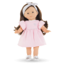 Cette tenue complète pour les poupées ma Corolle de 36 cm se compose d'une robe rose, effet gaze de coton, et d'un bandeau noeud gris clair. La robe est délicatement ornée d'un col et d'une ceinture argentés, et d'une broderie "coeur Corolle" sur le devant.