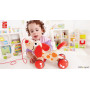 Aider l'enfant à mettre le chien dans différentes positions. Les parents pourront parler des différentes positions et proposer de donner un nom au chien !