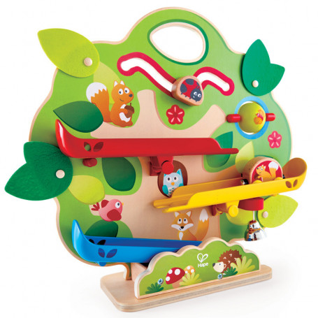 Cet écureuil est tout excité de descendre de son arbre. Place le tout en haut et regarde le glisser le long des multiples rampes et sonner la cloche lorsqu'il arrive en bas. Explore d'autres fonctionnalités amusantes !