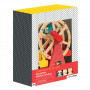 Ce jeu contient une grande roue en bois tournante avec trois nacelles et un boulier de perles colorées. Trois petits animaux en bois massif sont également inclus.