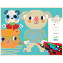 Un coffret coloriage contenant 3 grandes ardoises animaux recto-verso à colorier avec des feutres craie liquides. D’un côté, l’enfant suit les pointillés, c’est du graphisme. De l’autre, il dessine ce qui lui plaît. Il efface avec le chiffon et recommence à l'infini !