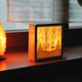 La veilleuse Papercut square - Snowy Woodland séduit par son design adorable et ses détails soigneusement mis en valeur. Le motif hivernal est divisé en quatre niveaux différents, ce qui crée un effet 3D fascinant qui est particulièrement bien mis en valeur lorsque l éclairage est allumé. La scène de forêt au design élaboré montre deux chevreuils au premier plan d une petite cabane forestière et des flocons de neige tombant en arrière-plan.