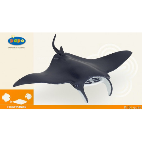 Enorme ! La raie manta peut atteindre 9 mètres d'envergure ! Elle vit dans les eaux tropicales et se nourrit de plancton. C'est un animal paisible et inoffensif.