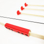 Arc en bois avec manche riveté. Il y a un trou au milieu de l'arc pour que l'enfant puisse mieux guider la flèche.