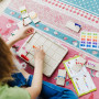 Contenu de la boite: 1 piste d’obstacles, 1 cavalière sur son cheval, 1 portique, 10 tuiles de jeu avec obstacles et chemins, 1 livret de défis et les règles du jeu.