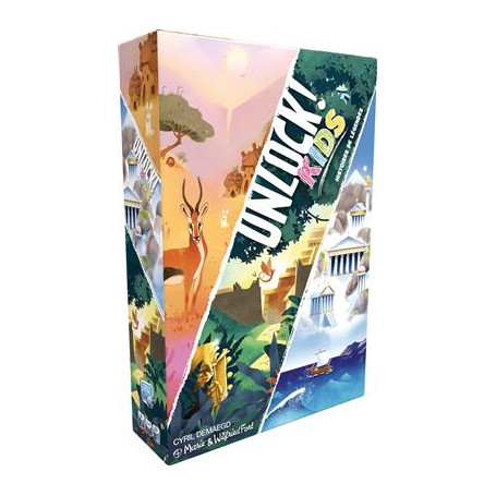 Trois histoires pour six nouvelles aventures qui entrainent enfants et parents en Afrique, chez les Mayas et vers l’Olympe ! Cette version d’Unlock! est totalement pensée et conçue pour les enfants à partir de 6 ans : ni calculs, ni textes, ni écran, ni connexion, elle fait la part belle au plaisir et à la réflexion.