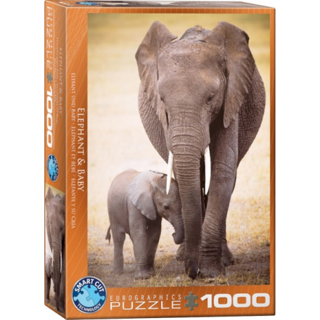 Puzzle 1000 pièces - Éléphant et son bébé - Eurographics