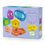 Jeu de cache-cache magnétique. Cinq animaux sauvages qui s’ouvrent en laissant apparaître un bébé de la forme géométrique du parent.
