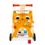 Ce joli chariot multi-activités à pousser est particulièrement adapté à l'apprentissage de la marche. Grâce à sa poignée ajustable en hauteur (de 47 à 53 cm), ce chariot est évolutif et s'adapte à la taille de votre enfant. Il l'accompagnera de 12 mois à 3 ans : son frein invisible et amovible permet de bloquer les roues (à 12 mois) et de les libérer progressivement afin de maîtriser la vitesse du chariot pendant l'apprentissage. En plus de la marche, votre enfant pourra tester sa motricité fine ainsi que sa dextérité avec les 8 activités ludiques proposées : looping, boîte à formes, souris à glisser, descendeur, engrenage, bouton sonore, yeux rotatifs et joues en feutrine pour développer le toucher. Enfin, avec ses 4 roues silencieuses en caoutchouc, il ne marque pas le sol.