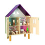 Bienvenue chez nous ! Maison de poupée en bois sur 3 étages située au cœur de la chambre de votre enfant, c'est la demeure rêvée pour les personnages des petits dès 3 ans. Confortable, la maison est meublée avec 11 accessoires en bois : 1 canapé, 1 petite table et 1 plante verte pour le salon, 1 table ronde, 1 chaise et 1 meuble de rangement pour la salle à manger, 1 lit, 1 chaise et 1 grande table pour la chambre, 1 ensemble lavabo et miroir et 1 WC pour la salle d'eau. Le grenier au dernier étage peut être aménagé ou décoré selon les envies du petit propriétaire. Pas de travaux nécessaires ! Décorée avec de belles impressions au sol et aux murs, cette charmante maison en bois dispose d'ouvertures magnétiques et propose ainsi une grande surface de jeu. Les 2 portes se referment facilement pour ranger tout le contenu et offrirun peu d'intimité aux habitants.