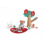 Ce coffret contient de nombreux accessoires : arbre, animaux, trousse de secours, extincteur, flammes en feutrine, talkies-walkies, thermomètre, biberon, seringue, et bien plus. Tout est pensé pour créer des histoires inspirantes autour de la sauvegarde des forêts et du soin animalier.