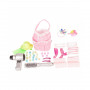 Cette tête à coiffer est livrée avec une brosse à cheveux ainsi qu'un sac contenant de nombreux (et précieux) accessoires (barrettes, élastiques, petite trousse de maquillages, etc.)