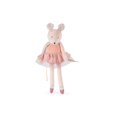 La Petite Souris Rose de Moulin Roty, issue de la collection La Petite École de Danse, est habillée avec une grâce infinie. Sa jupe tutu rayée, son petit nœud sur la tête et ses ballerines nouées ne manqueront pas de captiver le cœur de votre enfant. Chaque détail est pensé pour évoquer le monde enchanté de la danse, rendant cette souris un compagnon de jeu et de rêves idéal.
