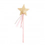 Cette baguette magique est d'une belle couleur rose, surmontée d'une étoile pailletée, dorée et agrémentée d'élégants rubans.
