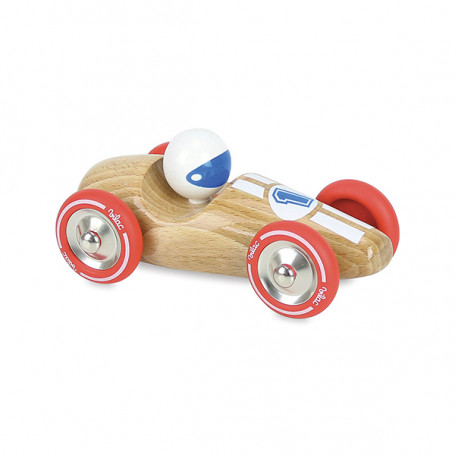 Voiture de course grand modèle en bois massif. Coloris bois naturel vernis.