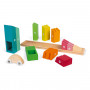This beautiful wooden construction game is made of 10 blocks to be replaced in ascending order on their base to form a slope. Each block is numbered from 1 to 10 to learn the order of magnitude. Once the slope is finished, the little car can roll it down to check that there is no error, and then park in the garage under the last blocks!