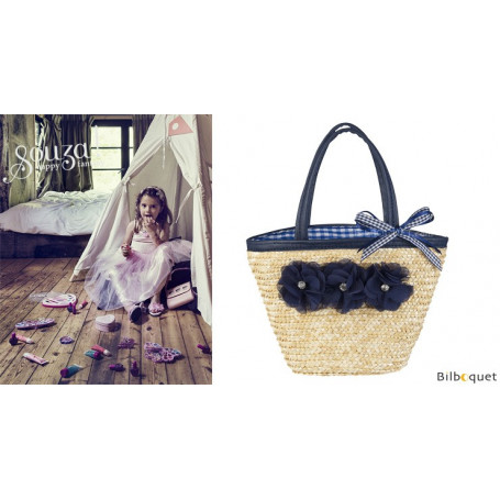Bag Xanthe, natural straw, with blue flowers - Souza Happy Fantasy