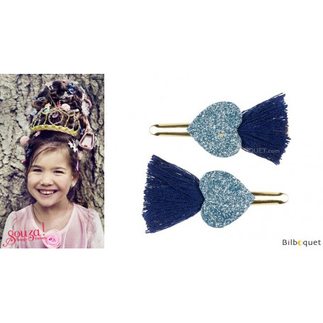 Elleny Navy Blue Hearts Hair Clips - 1 pair - Accessories for Kids - Souza for kids - Happy Fantasy