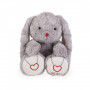 Rabbit in the new grey-coloured fur, specially chosen for its exceptional softness. Its long arms and large ears are easy to grab, and give big tender cuddles. Its large size enables it to remain in a seated position, for optimal presentation in baby's bedroom. A tiny red nose, feet embroidered with hearts, a red Kaloo patch and Kaloo embroidery are the signature elements of all the range's products, making them instantly identifiable.